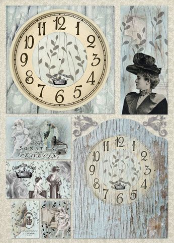 #103632 Карта для декупажа "РОЗЫ И ЧАСЫ" (Размер: 50 х 70 см Плотность: 80 г/м)