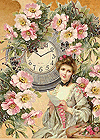 #100614 Бумага рисовая для декупажа "Дама с часами" (21 x 30 см, Плотность: 28 г/м²)