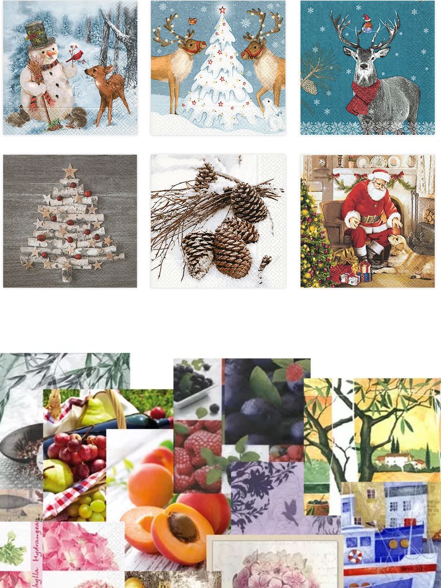 Салфетки бумажные ассорти трехслойные "Рождественская композиция" (33 x 33 см., 6 шт. )