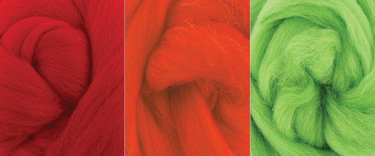 #104730 Шерсть для валяния "Шерстяная палитра - Маковое поле (мини)" (100% мериносовая полутонкая шерсть, 3 цвета по 12 г.)