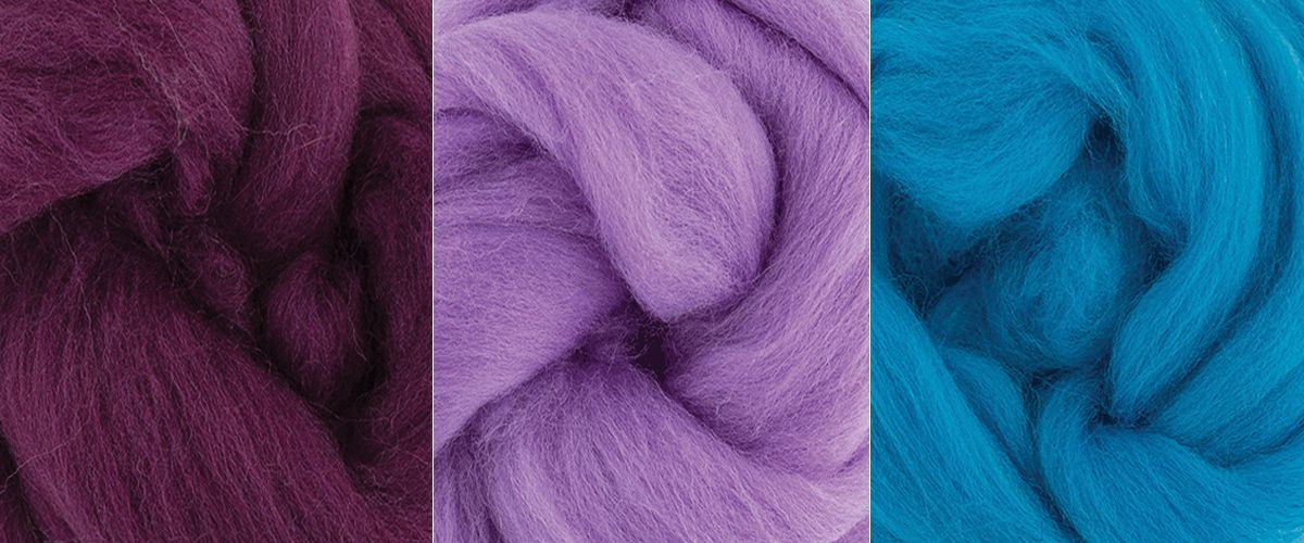 3 цвета по 12 гр.: фиолетовый, светлая фиалка, голубая бирюза. Натуральная однотонная, полутонкая шерсть для валяния. Более грубая по сравнению с тонкой шерстью. Непряденая лента, 100% полуто... (подробнее) |