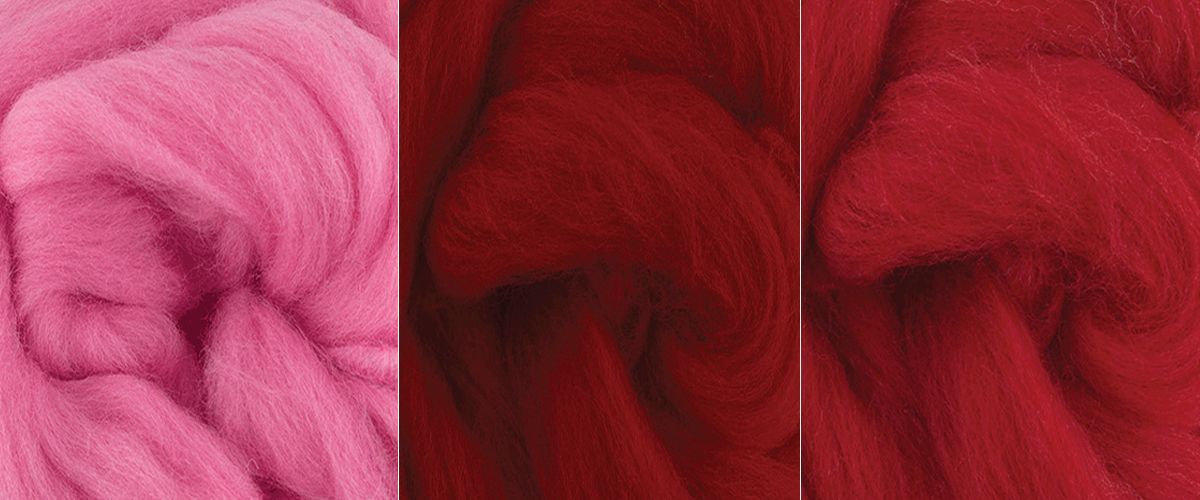 #104737 Шерсть для валяния "Шерстяная палитра - Шиповник (мини)" (100% мериносовая полутонкая шерсть, 3 цвета по 12 г.)
