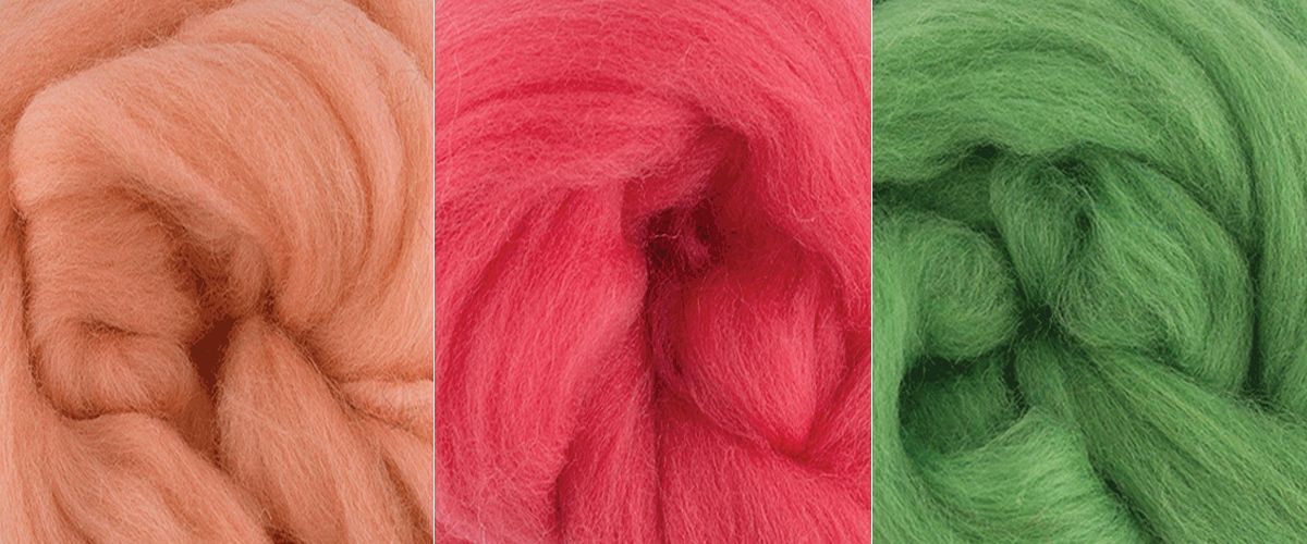 #104732 Шерсть для валяния "Шерстяная палитра - Фруктовый сад (мини)" (100% мериносовая полутонкая шерсть, 3 цвета по 12 г.)