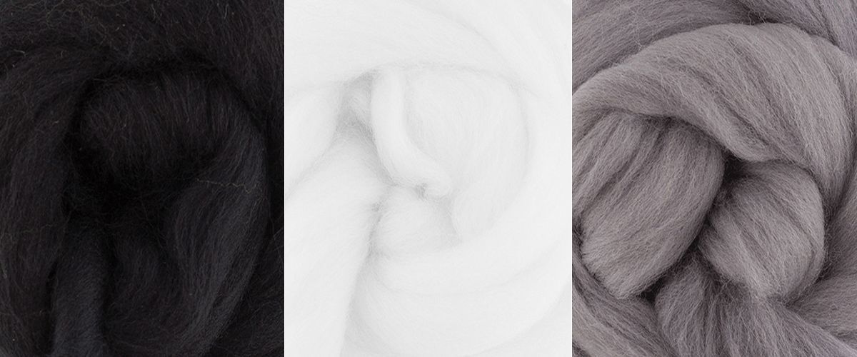 #104728 Шерсть для валяния "Шерстяная палитра - Черный, белый (мини)" (100% мериносовая полутонкая шерсть, 3 цвета по 12 г.)