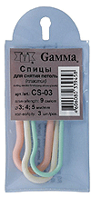 Спицы для снятия петель "Gamma" CS-03 пластик 3 шт. Вспомогательные спицы для снятия петель . Удобны при вязании кос. В упаковке 3 размера: 3 мм, 4 мм, 5 мм. Длина спицы 9 см. |