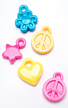 #80398 Набор пластиковых фигурных бусин `Flower, Heart, and Peace Sign` (25 мм., 113 гр.)