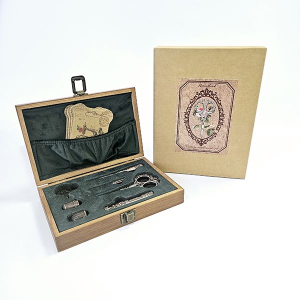 Подарочный набор в шкатулке из дерева с красивой гравировкой на крышке "Винтажный набор для рукоделия"