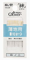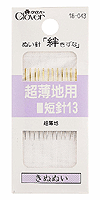 Иглы Clover для работы с очень тонкими тканями. Тонкие, острые и прочные. Никелированная сталь со шлифованным кончиком и позолоченным ушком. 12 игл. Размер 0.51 x 28.8 мм. Сделано в Японии |