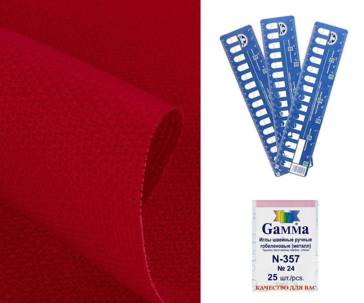 #104198 Канва "Gamma" Aida №14 цвет красный