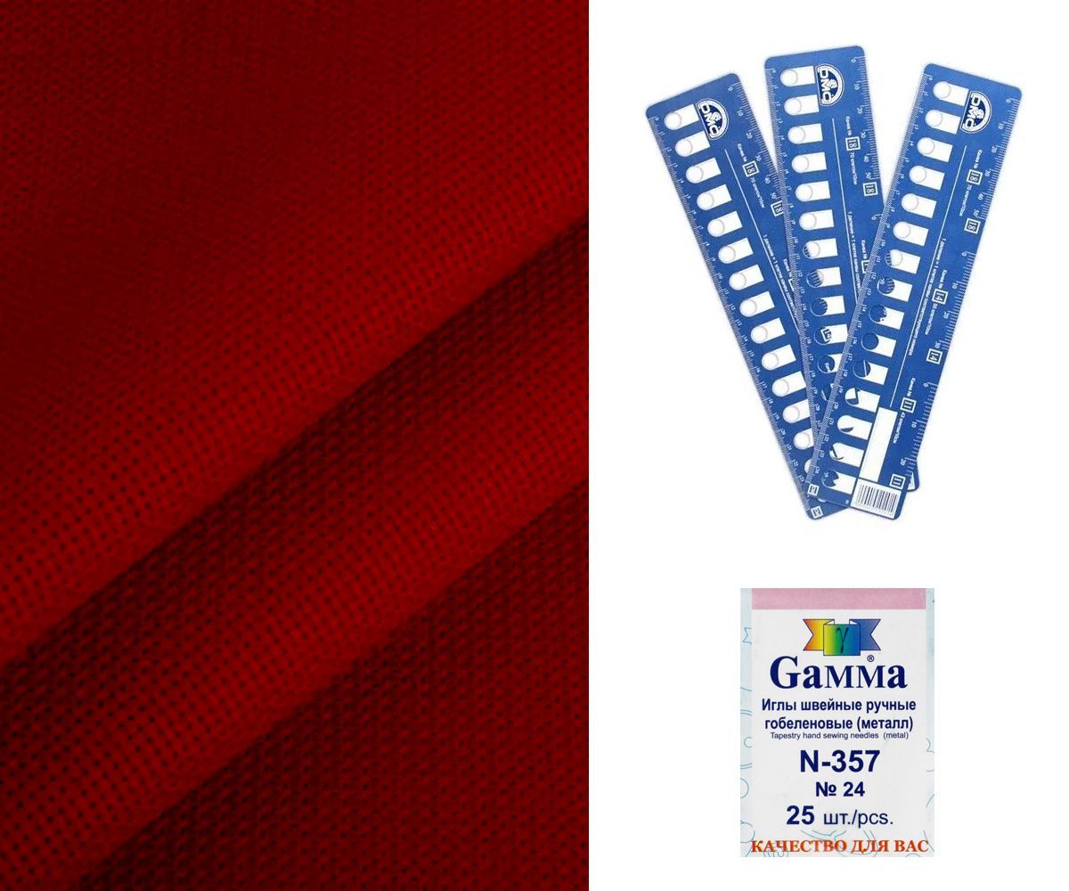 Канва Аида 14 (40х50 см, хлопок 100%, цвет - красный, Беларусь)
