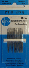 Иглы вышивальные высшего качества. Изготовлены в Англии по заказу `РТО Лтд`.